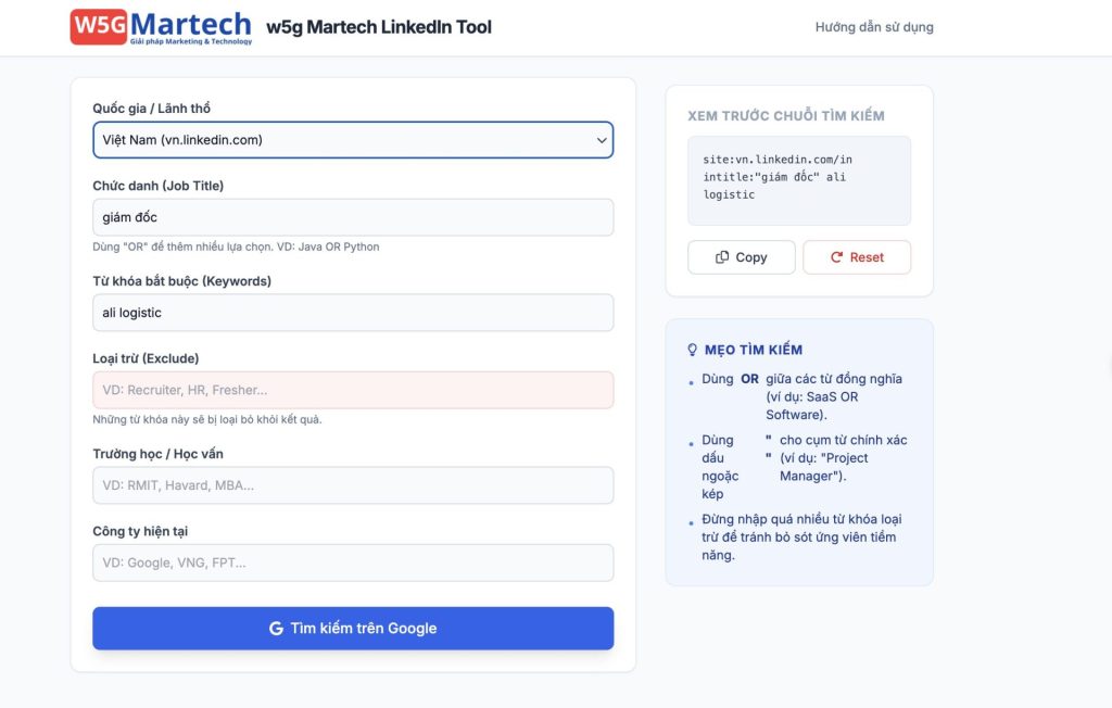 LinkedIn Biz Search: Tìm kiếm trực tiếp profile của các Giám đốc xuất nhập khẩu, Trưởng phòng Logistics trên LinkedIn.