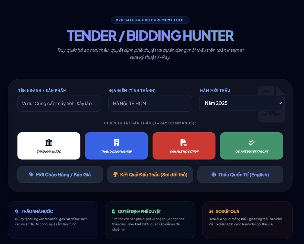 - [Tool Dùng Online] AI Automation – Tender / Bidding Hunter: Giải Pháp “Săn” Gói Thầu & Soi Giá Đối Thủ B2B Tự Động