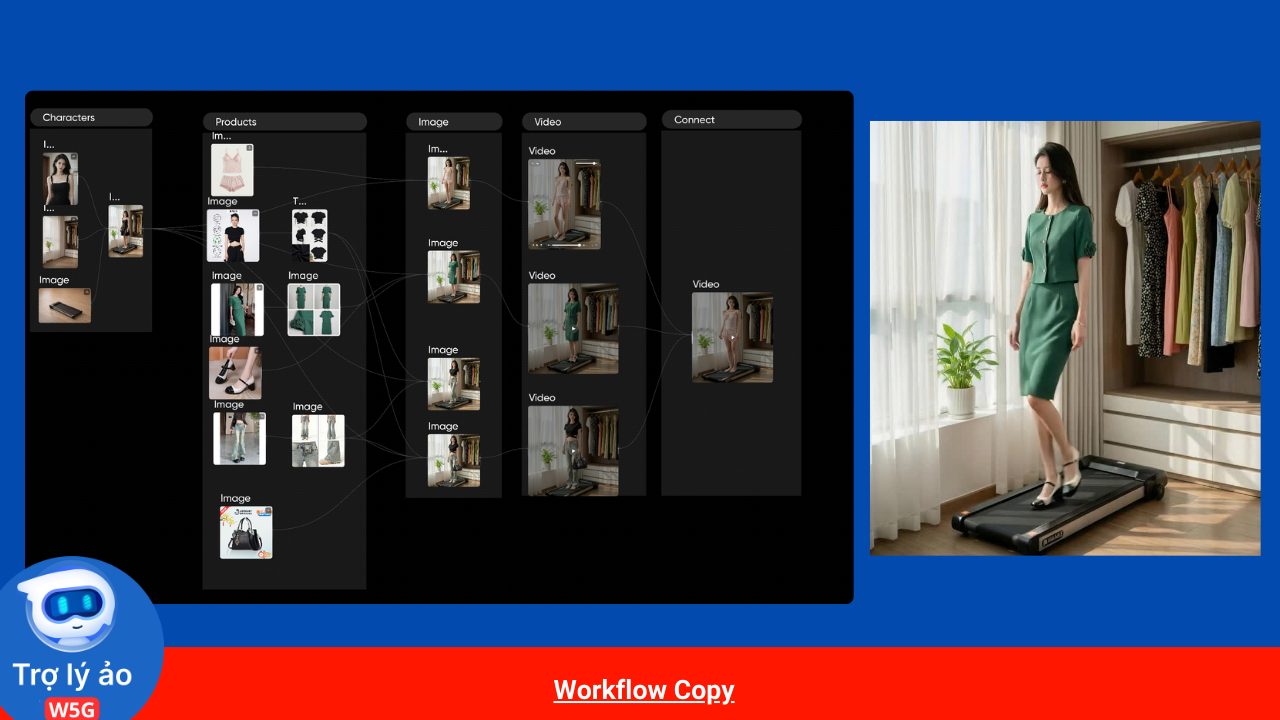 Thiết kế dạng luồng trực quan: Người dùng có thể kết nối hình ảnh, video, văn bản và âm thanh lại với nhau để tạo thành một hệ thống sinh nội dung hoàn chỉnh.