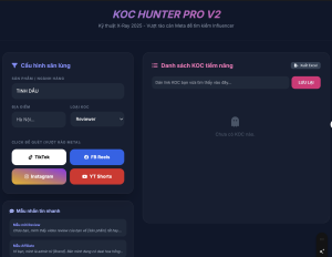 Hướng Dẫn Sử Dụng KOC Hunter Pro V2: Công Cụ Tìm Kiếm Influencer Đa Nền Tảng Bạn đang tìm kiếm KOC (Key Opinion Consumer) chất...