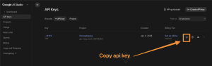- Sau khi dự án được chọn hoặc tạo, API Key của bạn sẽ được tạo và hiển thị trên màn hình.